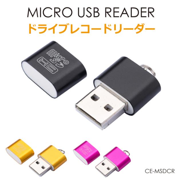 USB カードリーダー マイクロSD リーダー 小型 コンパクト ミニ 軽量 micro USB Reader ドライブレコードリーダー PC 全3色 CE-MSDCR メール便(ネコポス)送料無料