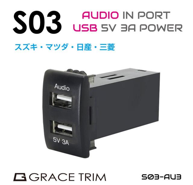 USB 充電 ポート USBポート 増設 車 usbポート 埋込 LED 2ポート 3A 急速充電 オーディオ 接続 ジャック 増設電源 スズキ車系 S03タイプ スイッチホール増設用 Audio&5V3 AUSBポート PO-S03-AU3 メール便(ネコポス)送料無料 翌日配達
