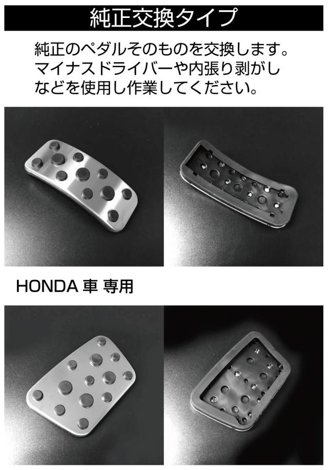 アクセルペダル用カバー:純正ペダルの上からそのまま被せます。 ブレーキペダル用カバー:純正のペダルカバーを外してから取り付けます。 |