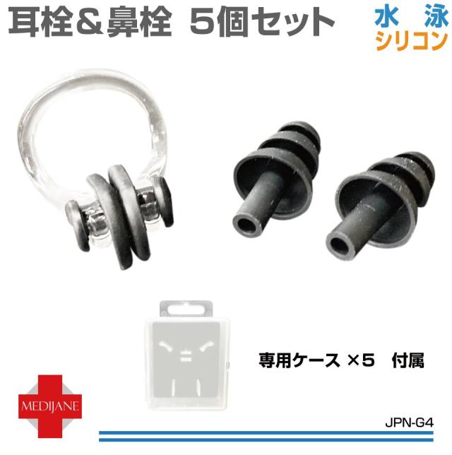 耳栓 睡眠 遮音 みみせん 耳せん シリコン 鼻栓 水泳 セット イヤープラグ 防音 騒音 安眠 快眠 就寝 聴覚過敏 飛行機 旅行 ライブ 工事 耳栓&鼻栓 各5個セット 専用ケース付き JPN-G4 メール便(ネコポス)送料無料