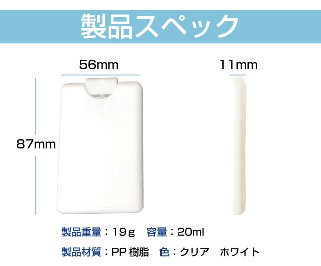 | 商品名 | 小型 カード型スプレーボトル 20ml×5個セット 全2色 |