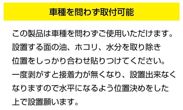| 注意事項 | ※設置する面の油、ホコリ、水分をよく取り除いてから取付けを行ってください。 |