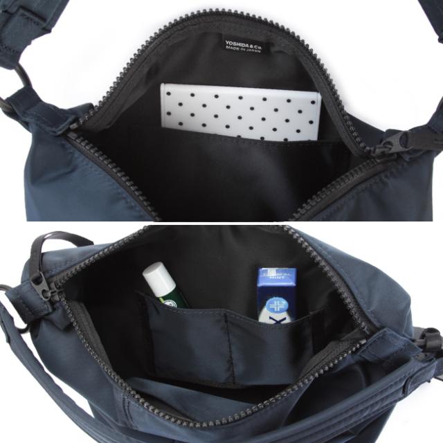 | ブランド |ポーター / PORTER シリーズ |シェル / SHELL 品番 |679-26802 形状 |ショルダーバッグ / 2WAY SHOULDER BAG(L) 外寸 |W150×H200×D150[mm] |付属ポーチ:W150×H110[mm] 重量 |約 370g 収納サイズ |A5用紙サイズ 素材 |表:ナイロンツイル(裏面ソフトPVC加工) |裏:ナイロンツイル(裏面アクリルコーティング) |付属:牛ステア(コンビネーション鞣し) 付属 |レザーチャーム / ポーチ(本体と同色) 生産国 |日本 / Made in Japan |