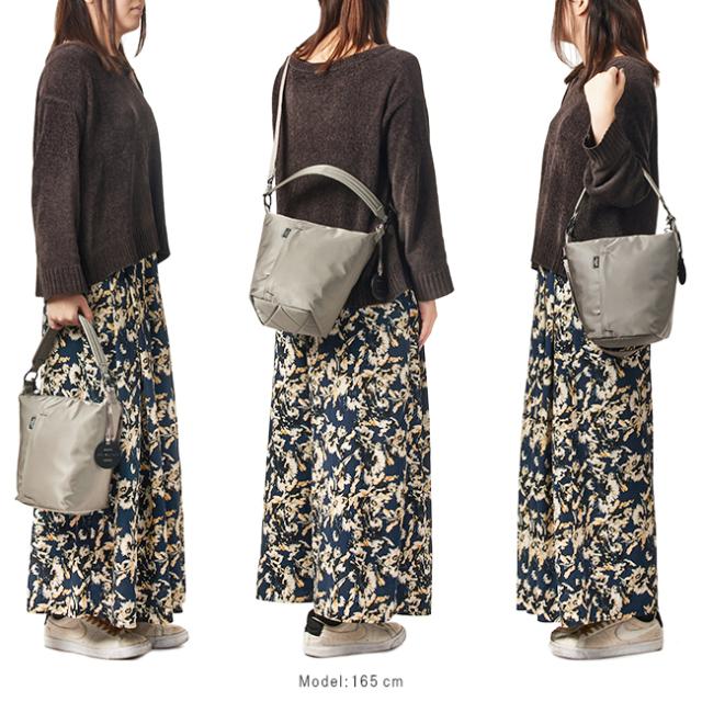 | 女性の使いやすさにこだわったシリーズ「PORTER SHELL(シェル)」 上品で落ち着いた色合いのミリタリーカラーを取り入れ、女性にとっての使いやすさにこだわったレディースカジュアルシリーズです。 海外のアウトドアメーカーが作るミリタリーラインに見られる色合いをモチーフにした、落ち着いたトーンのカラーリングと軽量なパーツ使いが特徴。 ミリタリーのボンサックをモチーフにした、縦長のフォルムが特徴的なデザインです。ハンドルと取り外し可能なショルダーストラップが付属し、肩掛けだけでなく手持ちでもお使いいただける2WAY仕様に。コンパクトながらマチ幅もあり、かさばる荷物も収納できます。 女性が普段使いしやすいサイズ感や開閉が滑らかなビスロンファスナー、長くて掴みやすいファスナー引き手など、ポーターらしいディテールもポイントです。全型共通でアメリカ軍とドイツ軍のドッグタグをモチーフにした刻印入りのレザーチャームと、リップなどを収納するのに便利なポーチが付属します。 |