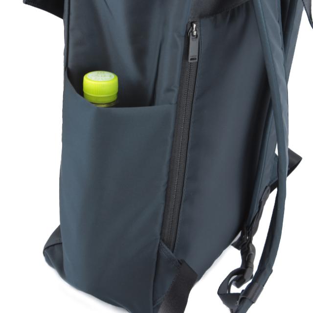 反対側には、500mlのペットボトルや折り畳み傘などが収納できるポケットを装備しています。