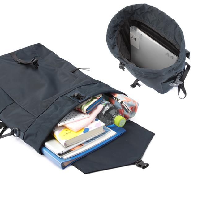 A4サイズが収納できるリュックサック。オン・オフ問わずデイリーユースにお使いいただけます。