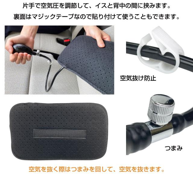 いす 椅子用 イス用 座席 腰当て 腰用 腰 肩 お尻 長時間 楽 大人 子ども 子供 高さ調整 在宅ワークグッズ テレワークグッズ サポート 柔らかい 空気 手動エアーポンプ