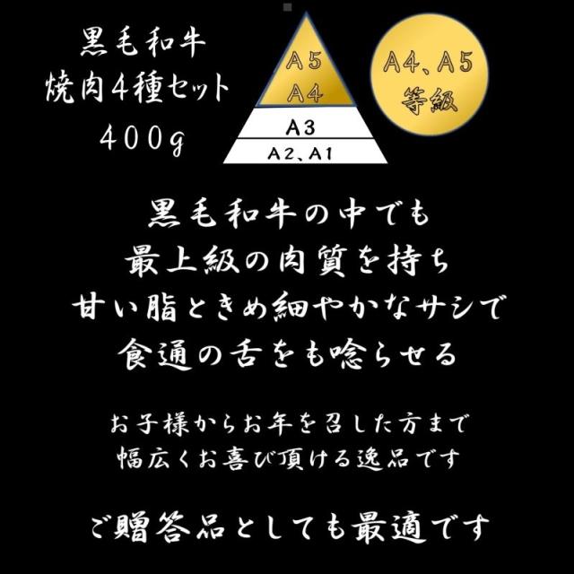 黒毛和牛 焼肉 和牛焼き肉 和牛 父の日 A4 A5 ランク 厳選 霜降り 焼肉4種セット 400g 薄切り 和牛 お中元 誕生日 高級肉 お肉 焼肉 焼き肉 お取り寄せ グルメ 牛肉 特選カルビ 赤身 三角バラ リブロース ロース カルビ もも みすじ 美味しい 父の日 プレゼント ギフト