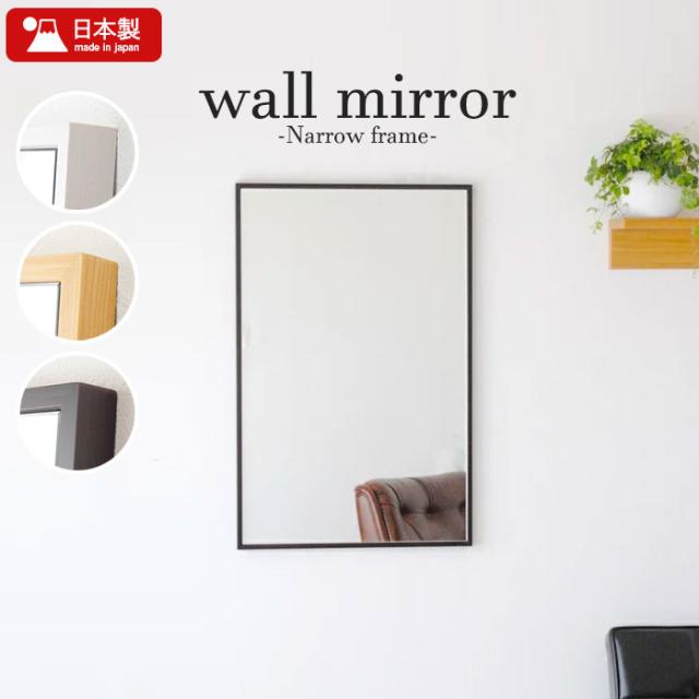 【値下げ】壁掛け ミラー 47×82 細枠 ウォールミラー 鏡 壁掛けミラー 姿見 ミラー 木製 フレーム 幅47 天然木 木製 日本製 北欧 おしゃれ