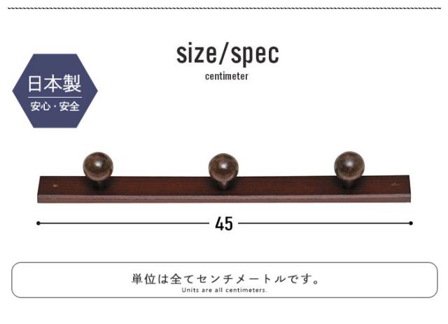 コートハンガー 壁掛け 3連フック 天然木 木製 杉 日本製 ハンガーフック ナチュラル ブラウン コート掛け 3玉 壁掛 壁面 ウォールハンガー ウォールフック 北欧 おしゃれ 壁付け フック 玄関 ハンガーラック かばん掛け 壁掛けハンガー 帽子