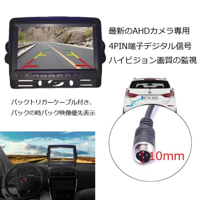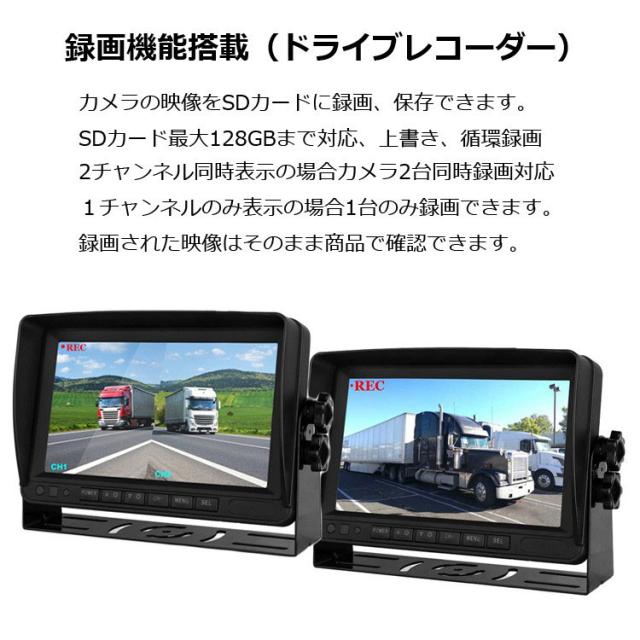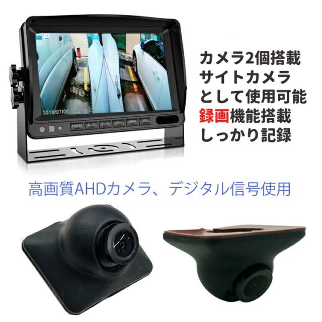 AHD信号対応録画機能付き 7インチAHDモニター+ADHカメラ(正像/鏡像切替可)2個+5m延長ケーブル2本 UFOAHDDVRSET2