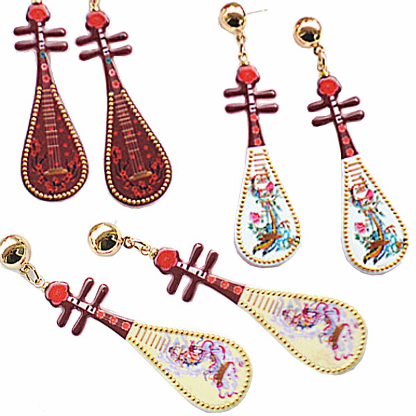琵琶ピアス ネコポス便なら【送料無料】|楽器,アクセサリー,ジュエリー,イヤリング,紅色,耳飾り,中国,中華街,レトロ,雑貨,ノスタルジック,お土産,ギフト,誕生日,プレゼント ro1113