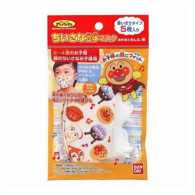 アンパンマンの子供用不織布マスクがリニューアル。お買い得感のある5枚入り!耳が痛くなりにくいソフトタイプの耳ひもです。息がしやすいボックスプリーツ仕様。不織布の3層フィルターでほこりや花粉などを99%ガードします。