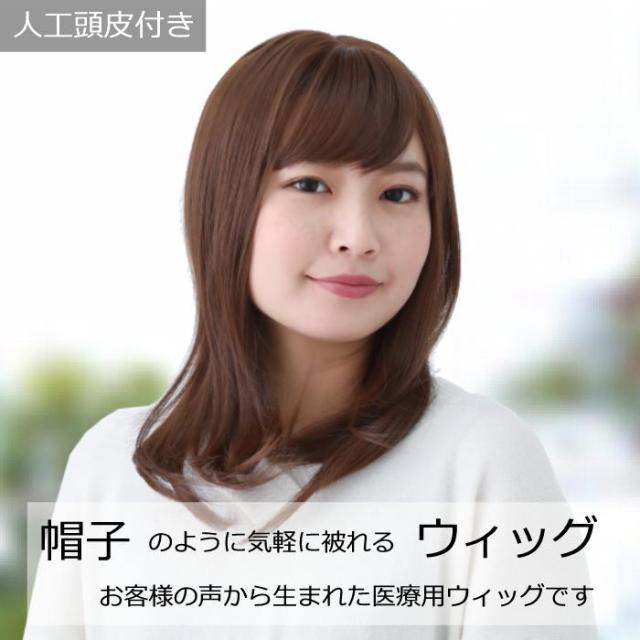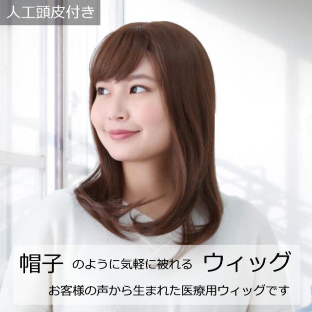 抗がん剤治療の副作用による脱毛や、頭部の外傷・アトピー等でお悩みの方に最適な毛付き帽子。医療用帽子と組み合わせる事で、自毛のように毛髪を出した状態で帽子を被ることができます。サイズ調節のアジャスター機能でお好みのサイズに調節可能(FREEサイズ56cmです)。また、頭部を覆うネットの部分は伸縮性のある素材を使用しています。