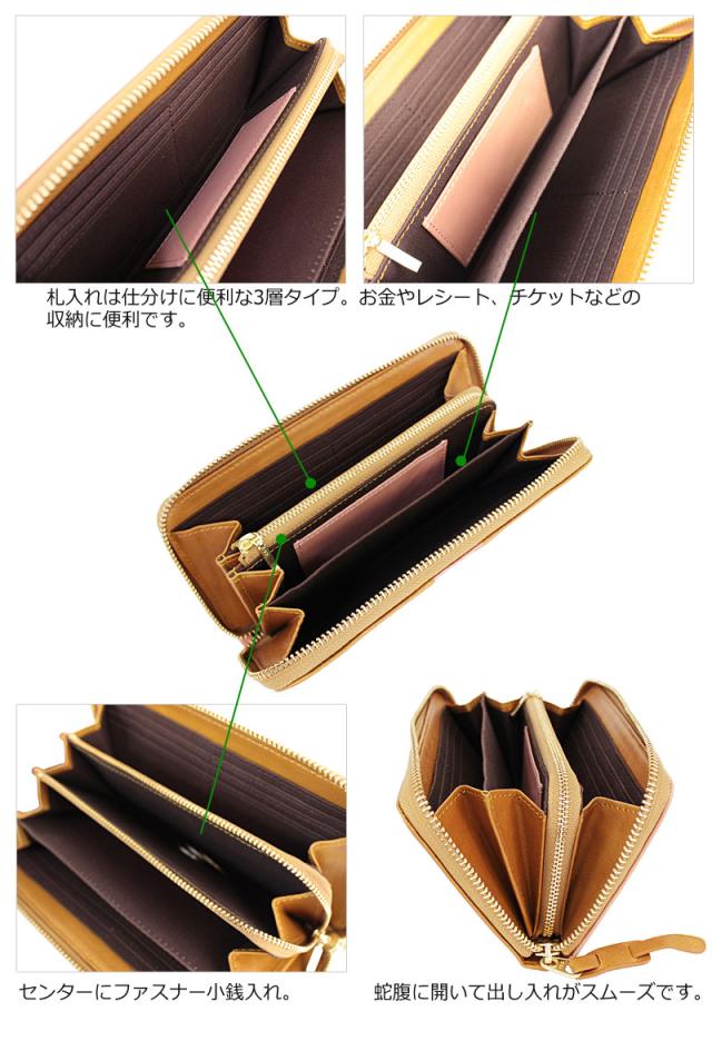 スリムで持ちやすいラウンドファスナーのロングウォレット。