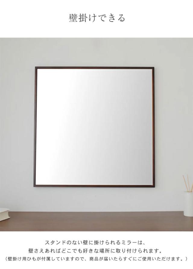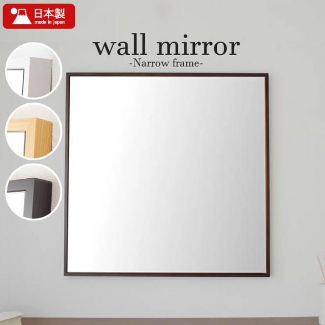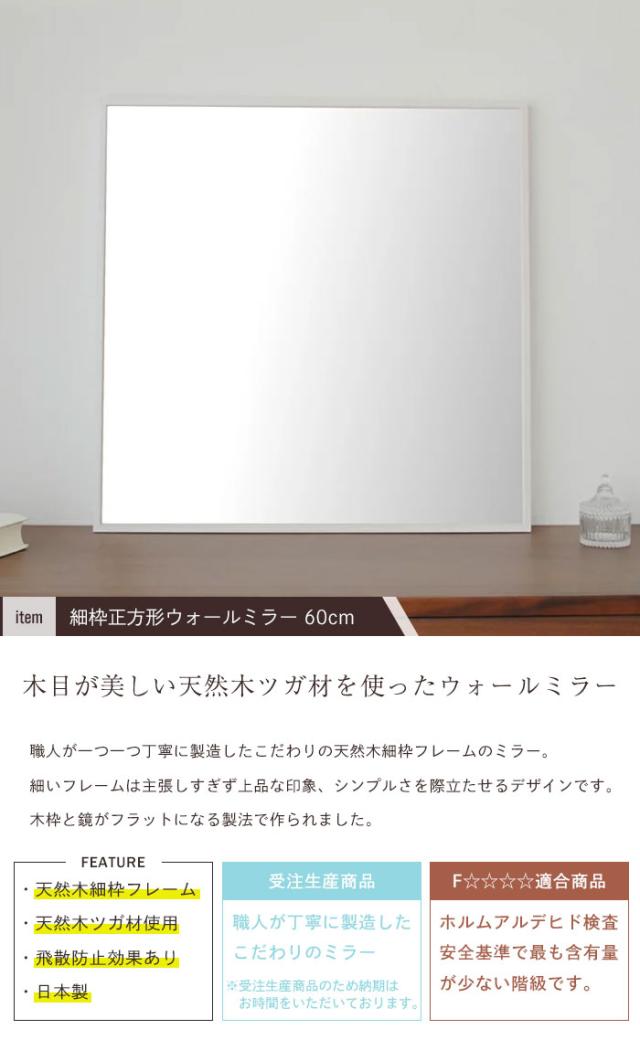 【値下げ】壁掛け ミラー 60 正方形 細枠 ウォールミラー 鏡 壁掛けミラー 姿見 ミラー 木製 フレーム 幅60 天然木 木製 日本製 北欧 おしゃれ