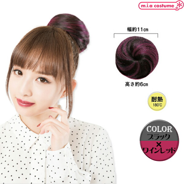 1265H▼【送料無料・即納】 BPW お団子 ブラック×ワインレッド 部分ウィッグ エクステ パーツ