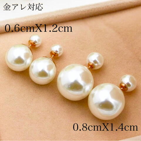 迫力の大きいパールと可愛い小さなパールを前後に着けられるお洒落なデザイン。