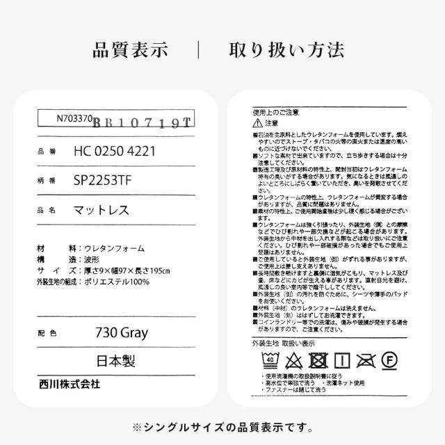 keyword | 体圧分散敷き布団,寝具,敷きふとん,ベッドマットレス,凹凸構造,凸凹,プロファイルウレタン,三つ折りマットレス,三つ折り敷き布団,折りたたみ,メーカー,ブランド,西川,nishikawa,西川の点で支える健康敷きふとん,ベージュ,シンプル,ダマスク柄,上品,おしゃれ,日本製,国産,シングルサイズ,※東京西川(西川産業) 西川リビング 京都西川 の3社が統合して西川株式会社に社名が変更になりました。