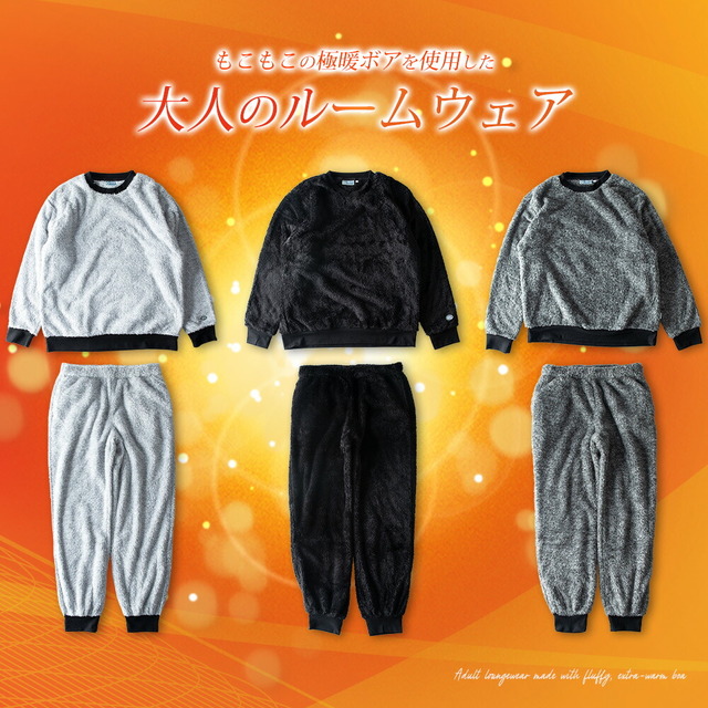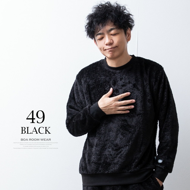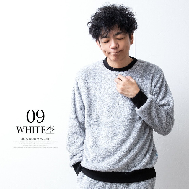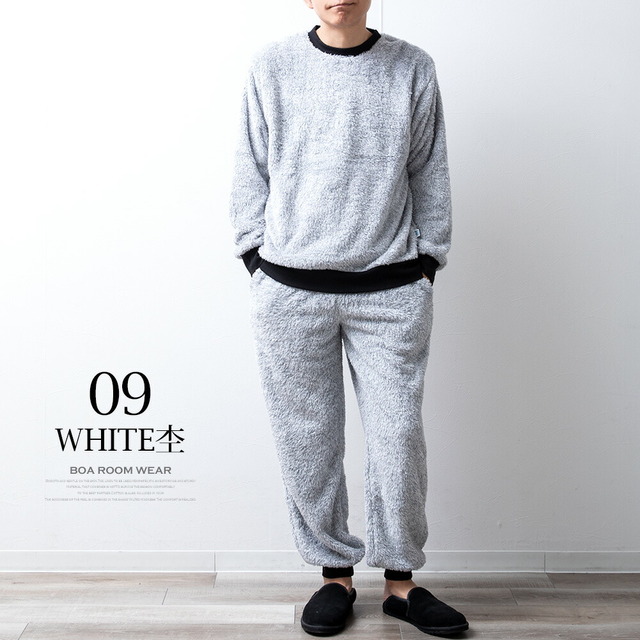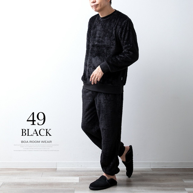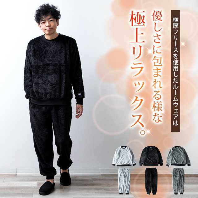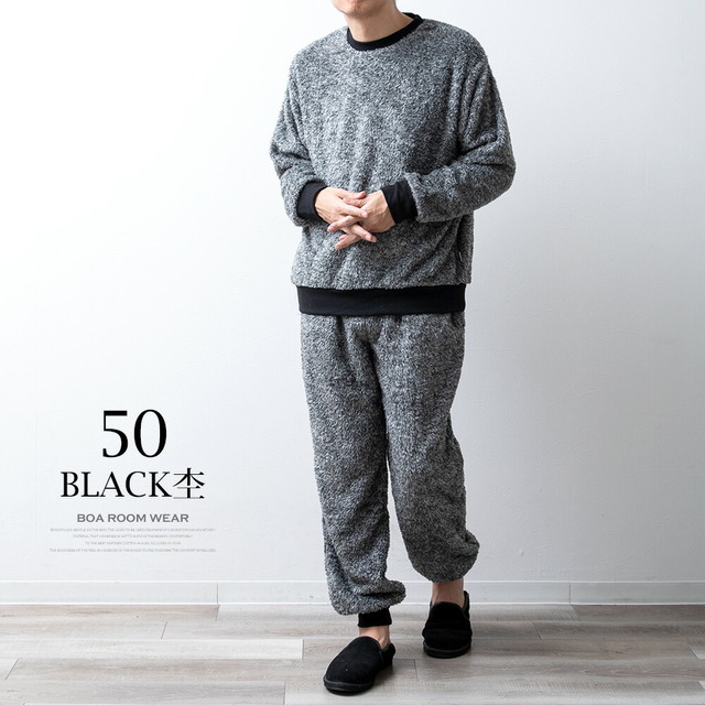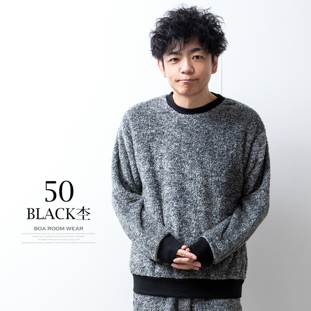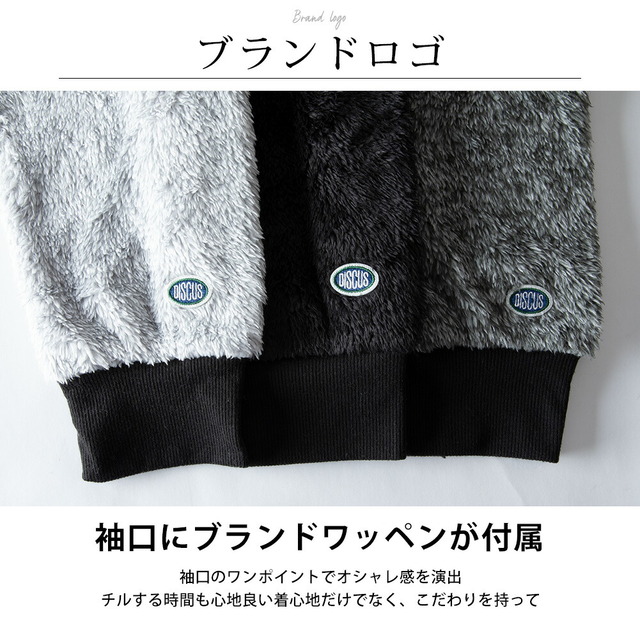 セットアップ メンズ ルームウェア 秋冬 長袖 上下セット DISCUS パジャマ おしゃれ 部屋着 ボア 暖かい Uネック ゆったり クルーネック 秋服 冬服 もこもこ