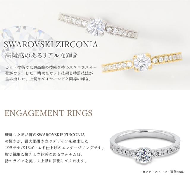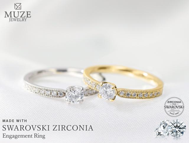 MUZE JEWELRY 直径4mm(0.25ct相当) クラウン プラチナ仕上げ オーダーメイド プラチナ仕上げ K18ゴールド仕上げ エンゲージリング 婚約指輪 スワロフスキージルコニア使用 リング 一粒 プロポーズ サプライズ 記念 made in japan 刻印 名入れ