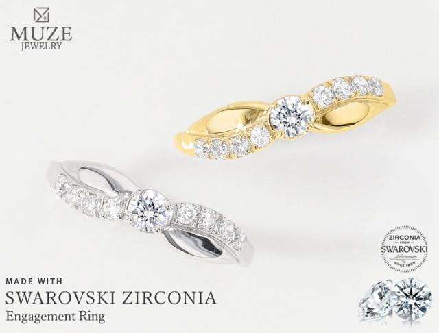 MUZE JEWELRY 指輪 直径3.5mm(総0.4ct相当) プラチナ仕上げ オーダーメイド プラチナ仕上げ K18ゴールド仕上げ エンゲージリング 婚約指輪 ツイストアーム スワロフスキージルコニア使用 リング プロポーズ サプライズ 記念 made in japan 刻印 名入れ
