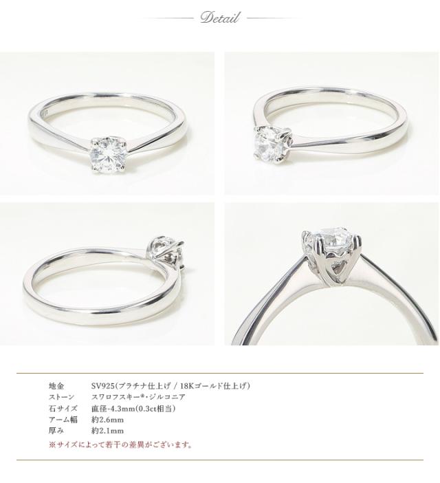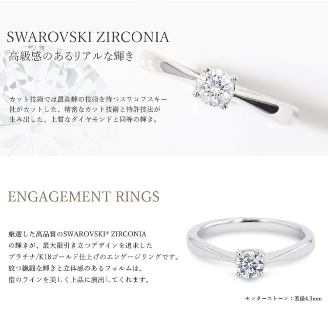 MUZE JEWELRY 指輪 直径4.3mm(0.3ct相当) プラチナ仕上げ オーダーメイド プラチナ仕上げ K18ゴールド仕上げ エンゲージリング 婚約指輪 スワロフスキージルコニア使用 リング 一粒 プロポーズ サプライズ 記念 made in japan 刻印 名入れ