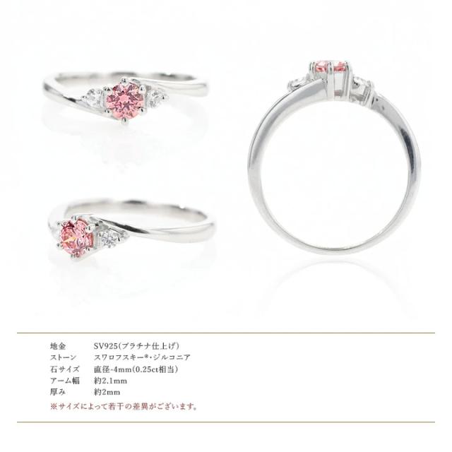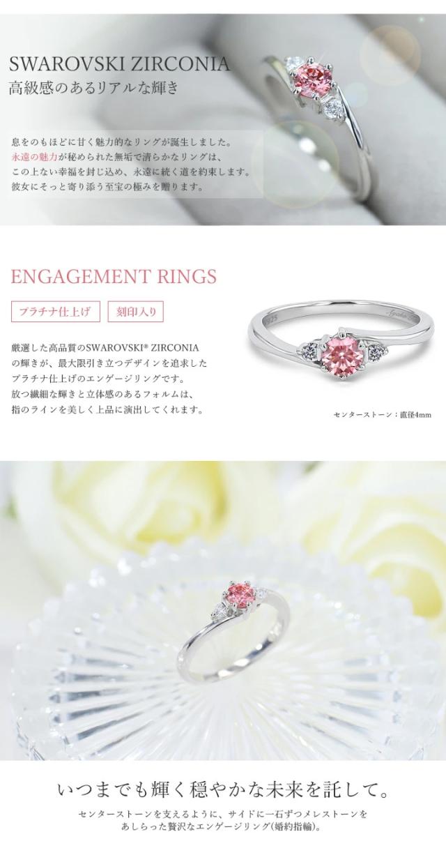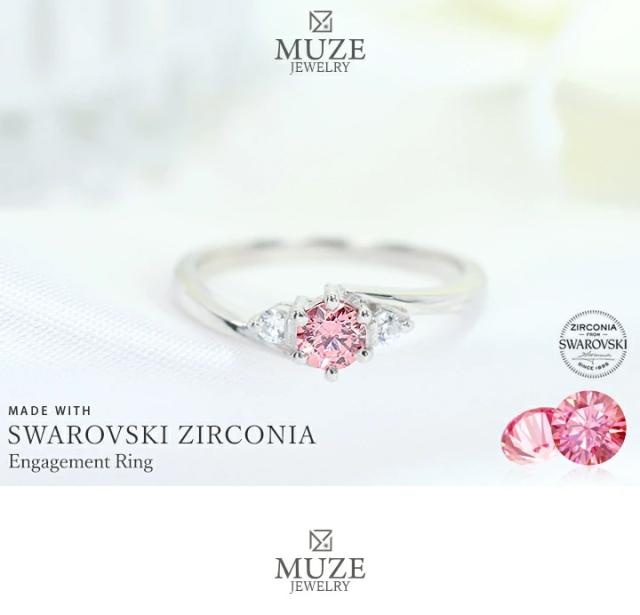 MUZE JEWELRY 直径4mm ファンシーピンク プラチナ仕上げ オーダーメイド 王道 エンゲージリング 婚約指輪 スワロフスキージルコニア使用 リング 一粒 プロポーズ サプライズ 記念 made in japan 刻印 名入れ