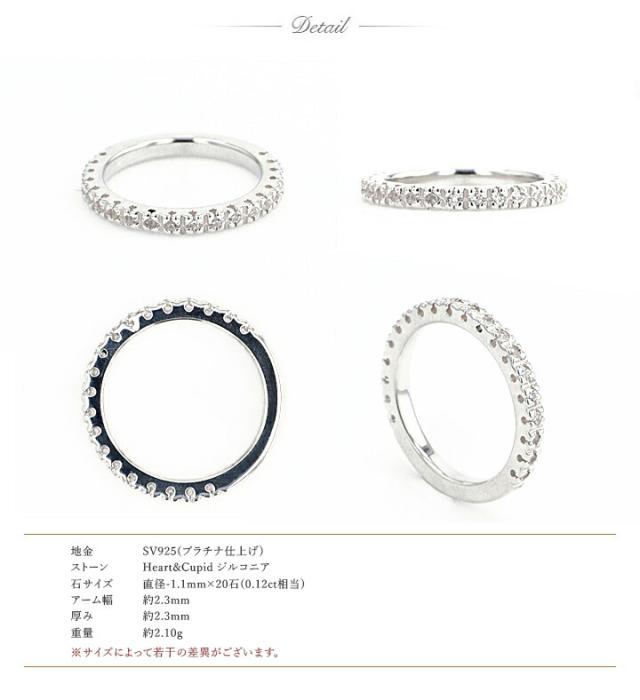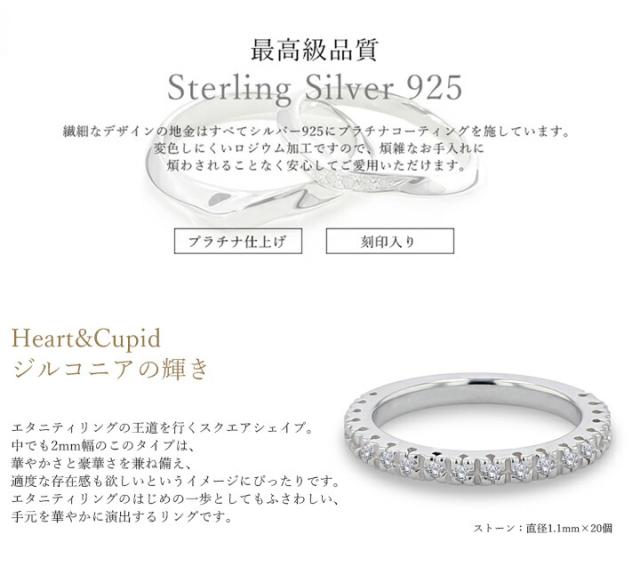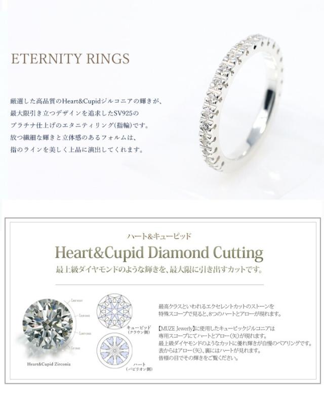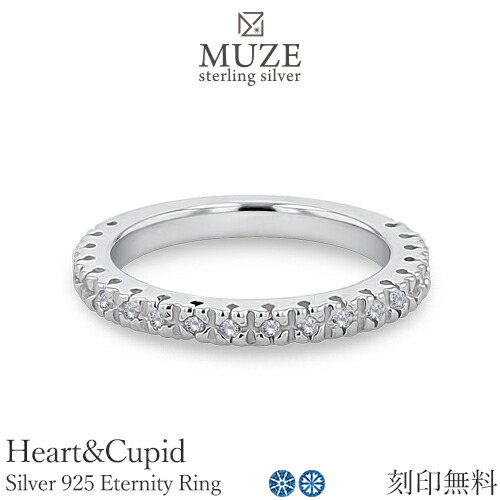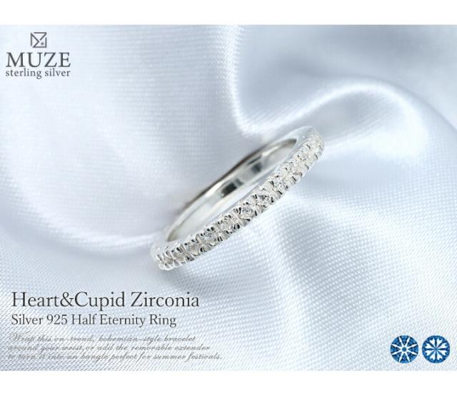 MUZE JEWELRY 直径-1.1mm×20石(0.12ct相当)SV925 プラチナ仕上げ 重ね付け エンゲージリング エタニティリング 結婚指輪 ハートキューピッド Heart&Cupid キュービックジルコニア ハーフエタニティ プロポーズ 記念 刻印 名入れ
