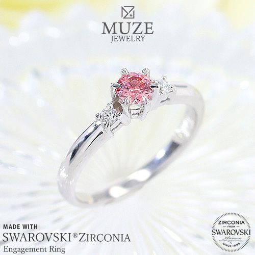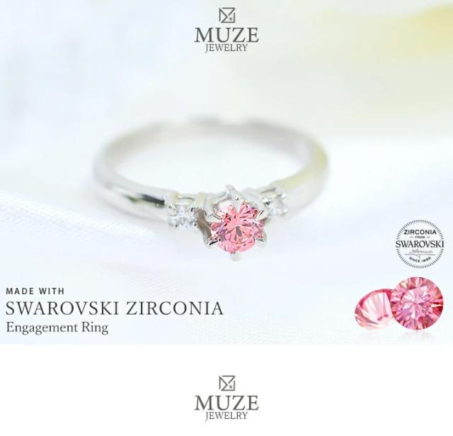 MUZE JEWELRY 直径4mm ファンシーピンク プラチナ仕上げ オーダーメイド 王道 エンゲージリング 婚約指輪 スワロフスキージルコニア使用 リング 一粒 プロポーズ サプライズ 記念 made in japan 刻印 名入れ