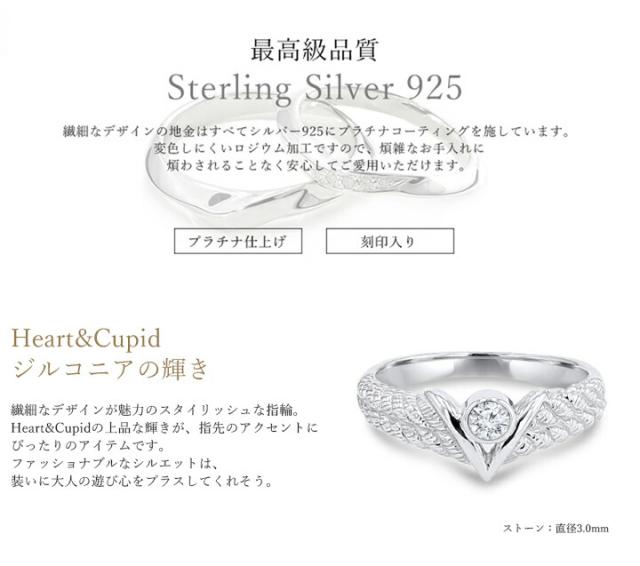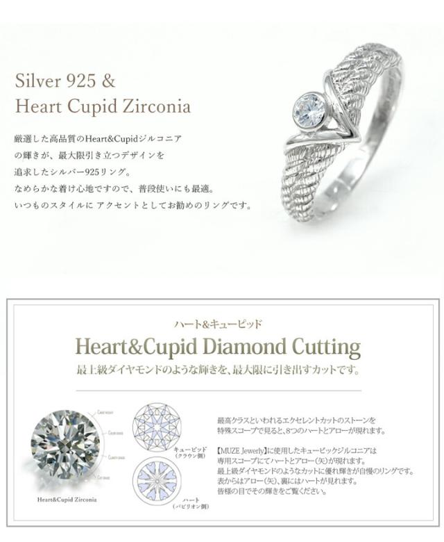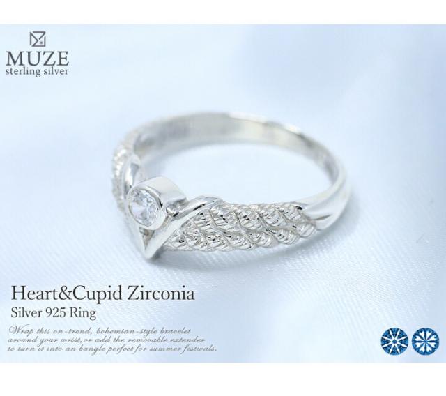 MUZE JEWELRY 直径3.0mm(0.11ct相当)SV925 シルバーリング ハートキューピッド Heart&Cupid 勝利の女神 キュービックジルコニア アンティーク リング シルバーリング ユニーク キラキラ 記念 made in japan 刻印 名入れ