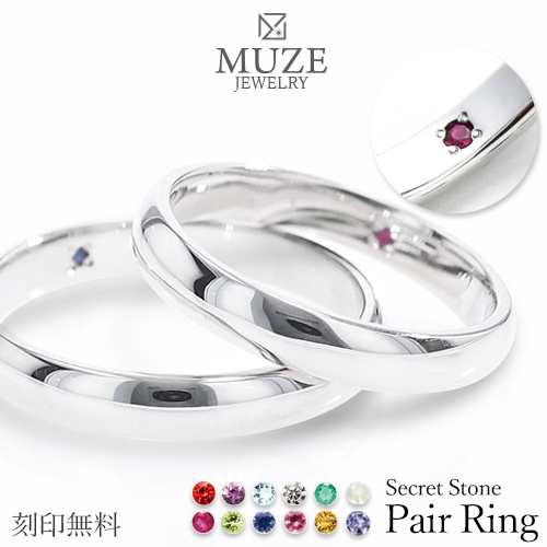 シークレットストーン ペアリング【名入れ無料】結婚指輪 MUZE JEWELRY ストレート マリッジリング 指輪 シルバー925プラチナ仕上げ カップル リング ペア プラチナ仕上げ SV925 プロポーズ サプライズ 記念 made in japan 刻印 名入れ
