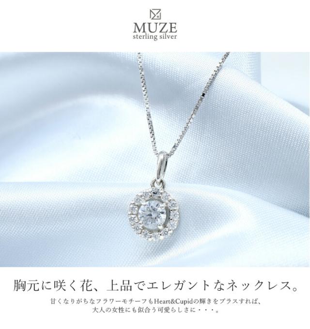 MUZE JEWELRY フラワーモチーフ SV925 ハートキューピッド 0.33ct相当 Heart&Cupid 4.5mm キュービックジルコニア シルバー 女性 結婚記念日 おしゃれ 彼女 妻 記念 ジュエリー made in japan