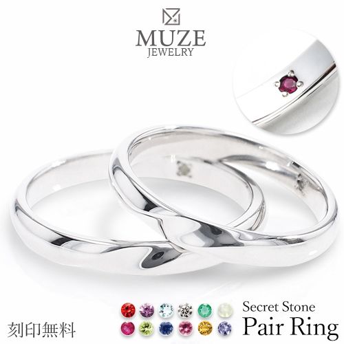 シークレットストーン ペアリング【名入れ無料】結婚指輪 MUZE JEWELRY ひねり マリッジリング 指輪 シルバー925プラチナ仕上げ プラチナ仕上げ SV925 プロポーズ サプライズ 記念 made in japan 刻印 名入れ