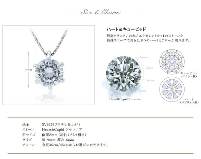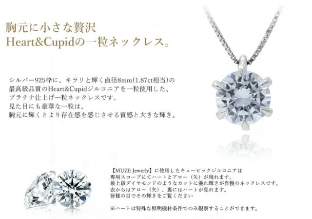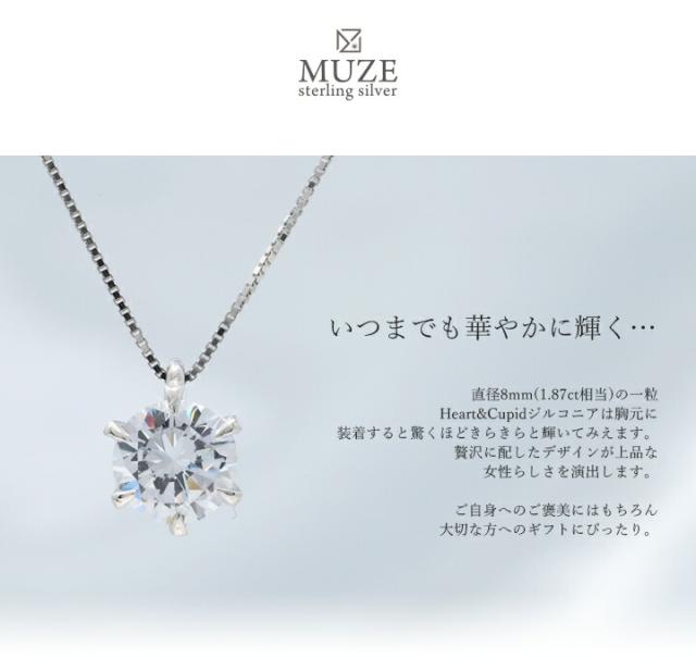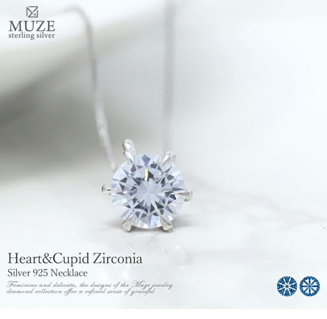 MUZE JEWELRY 一粒 シンプル 1.87ctネックレス SV925 ハートキューピッド Heart&Cupid キュービックジルコニア 1.87ct相当 シルバー 8mm 女性 結婚記念日 おしゃれ 彼女 妻 記念 ジュエリー made in japan