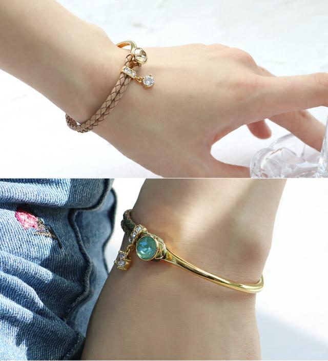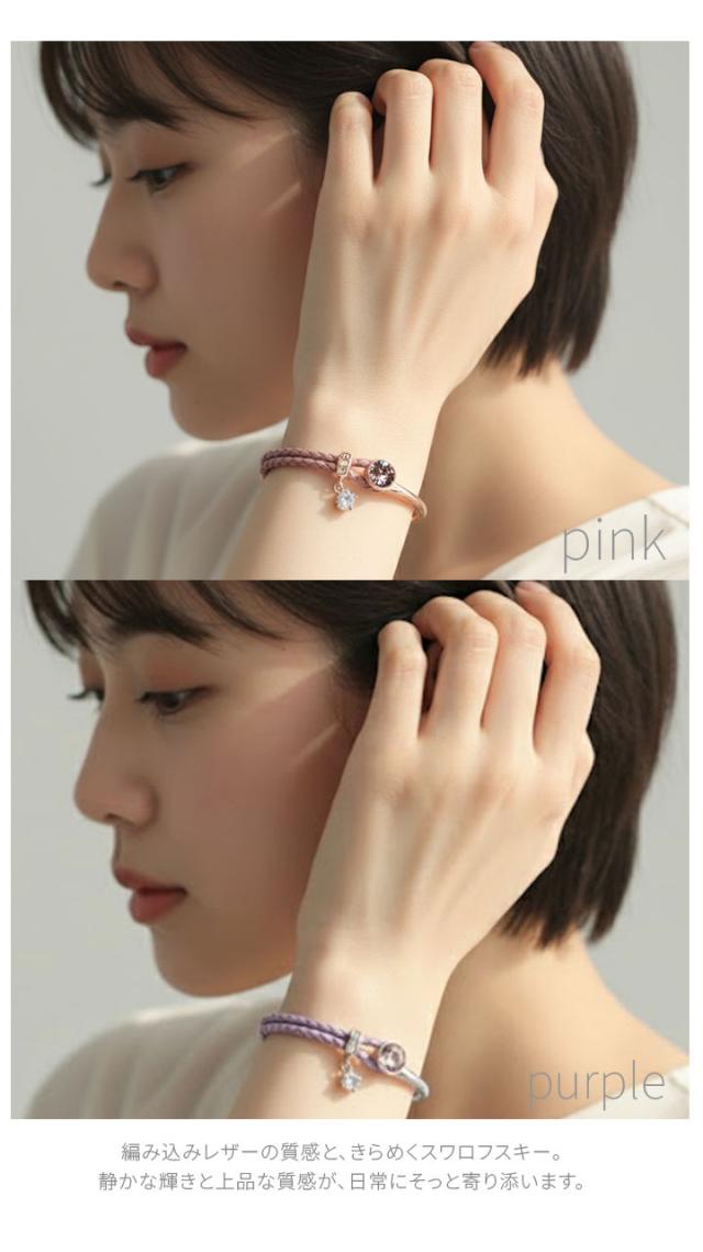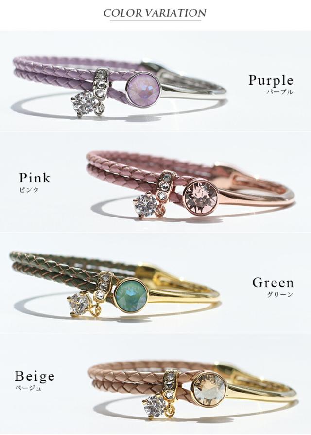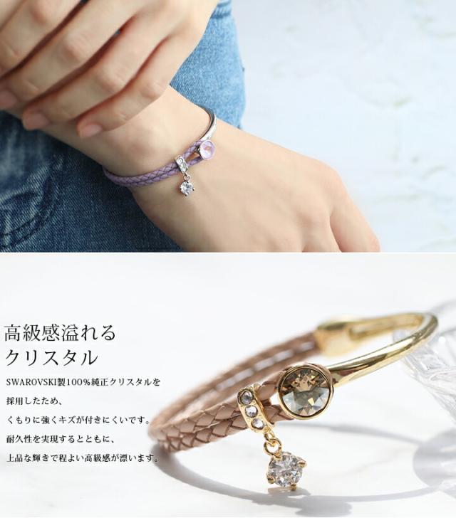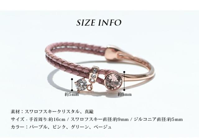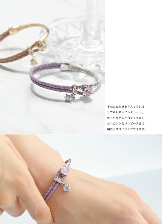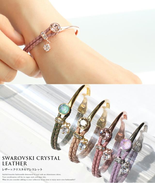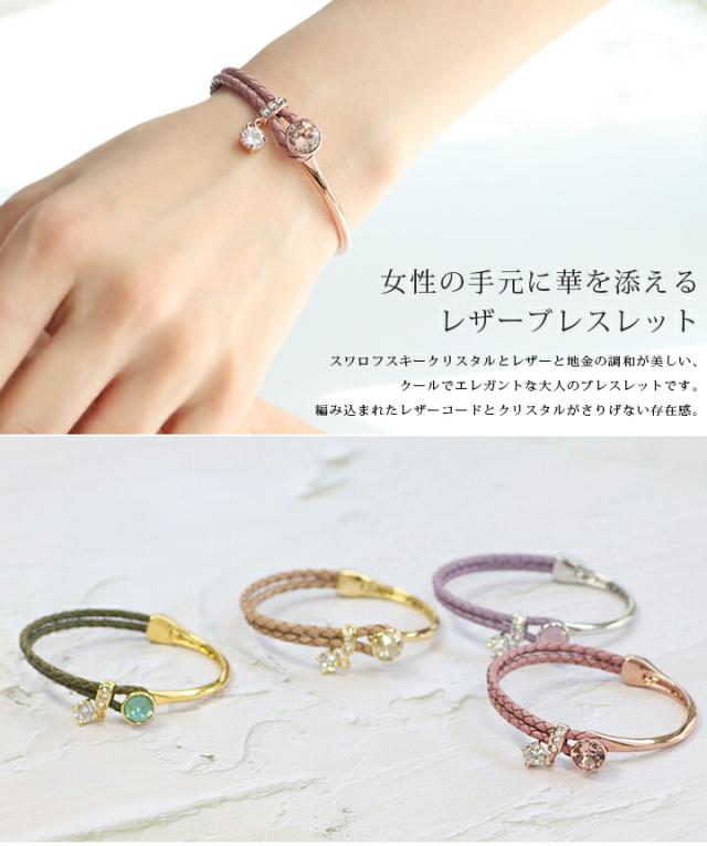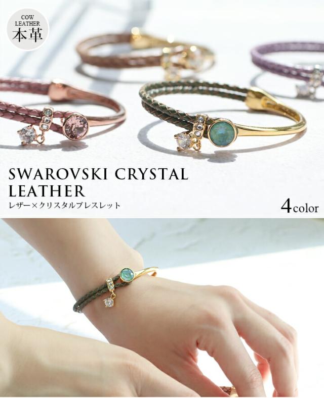 スワロフスキークリスタル使用 ブレスレット 4カラー レディース 2連ブレスレット フリーサイズ ピンク ジュエリー アクセサリ 本革 レザー 牛革 パーティー プレゼント white day 入学式 卒業式 卒園式 お呼ばれ 成人式 お祝い