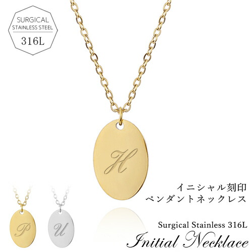オーバル ネックレス レディース イニシャル アレルギーフリー プレート ネックレス 名入れ ペンダントネックレス 小豆チェーン 2色 シルバー ゴールド 選べる26文字 大人 刻印 シンプル 女性 贈り物 【aruon 名入れ工房】【イニシャル刻印無料】