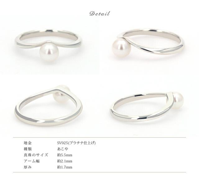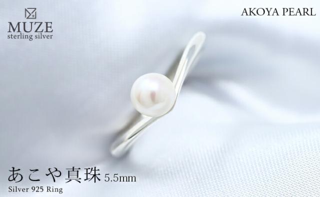 MUZE JEWELRY あこや真珠 アコヤパール 指輪 5.5mm 真珠リング SV925 プラチナ仕上げ オーダーメイド ウェーブライン シルバーリング プラチナ仕上げ 記念 made in japan 刻印 名入れ パール 真珠 Akoya pearl