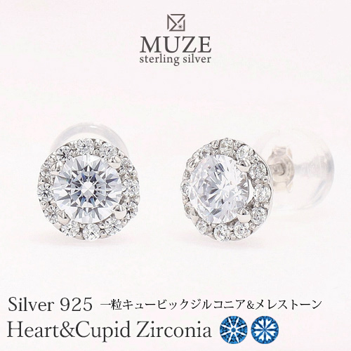 一粒ピアス 直径6.5mm SV925 メレストーン ハートキューピッド Heart&Cupid キュービックジルコニア シルバーピアス 一粒 ジュエリー お祝い 誕生日 レディース プレゼント 彼女 妻 記念 made in japan