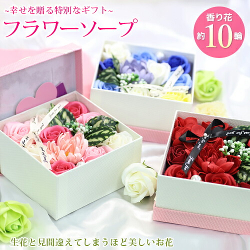フレグランスソープ フラワーギフト ソープ ブリザードフラワー 手提げ袋 メッセージカード付 セット 石鹸の花 シャボンフラワー フレグランスボックスアレンジ フラワーボックス