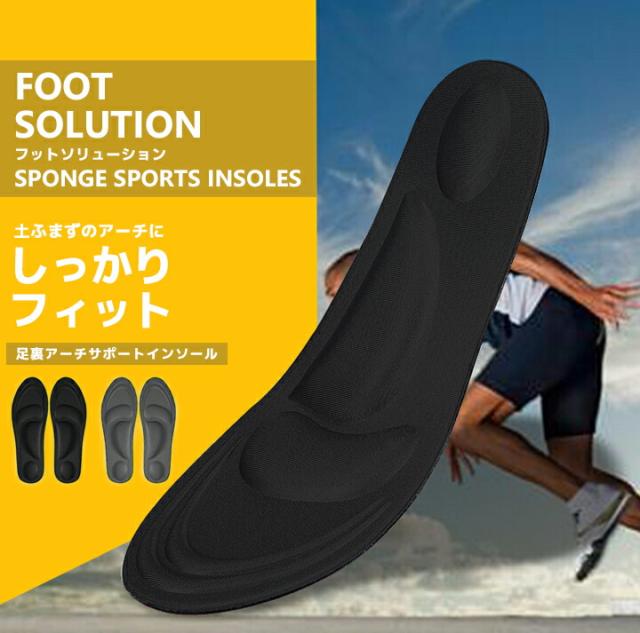アーチサポートインソール 男女サイズ 4Dスポンジ 中敷き フリーサイズ メンズ レディース 2カラー フィット感抜群 中敷き 偏平足 アーチ 土踏まず かかと つま先 サポート 疲れにくい 立ち仕事 スニーカー 立ち仕事 運動 ウォーキング 散歩