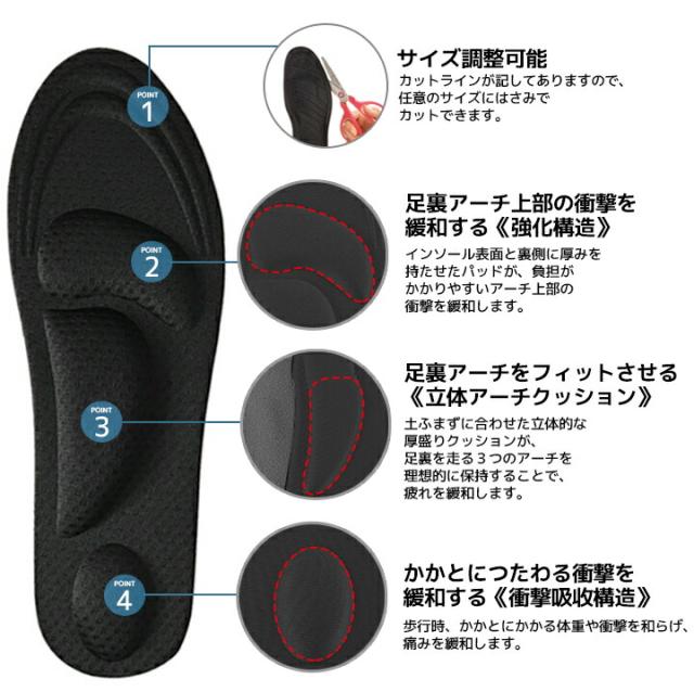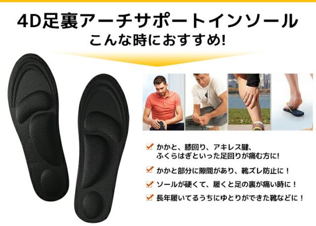 インソール アーチサポート 4D立体スポンジ 中敷き 土踏まず