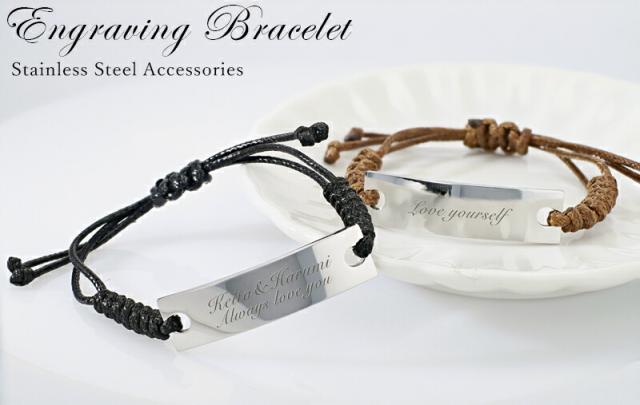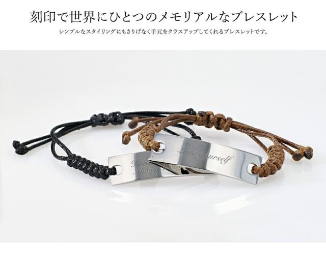 ワックスコード 刻印ブレスレット【名入れ無料】ロウ引紐 シンプル 名入れ 刻印無料 ブレスレット 刻印可能 メンズ レディースブレスレット おしゃれ 誕生日 男性 プレゼント aruon 名入れ工房