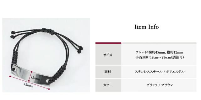 | サイズ | 腕回り:約12cm?26cm(調節可) プレート:横約45mm × 縦約12mm |