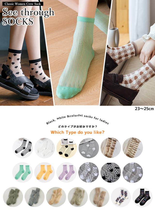 レディース ソックス シースルーソックス お好きに3点選んで 1250円 ショート丈 リボン 黒 白 透明 春夏秋 夏ソックス 靴下 23-25cm ショートソックス シースルー クルー ソックス 女性 婦人 ソックス くつした くつ下 おしゃれヘビロテソックス