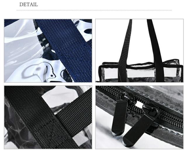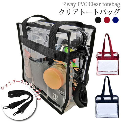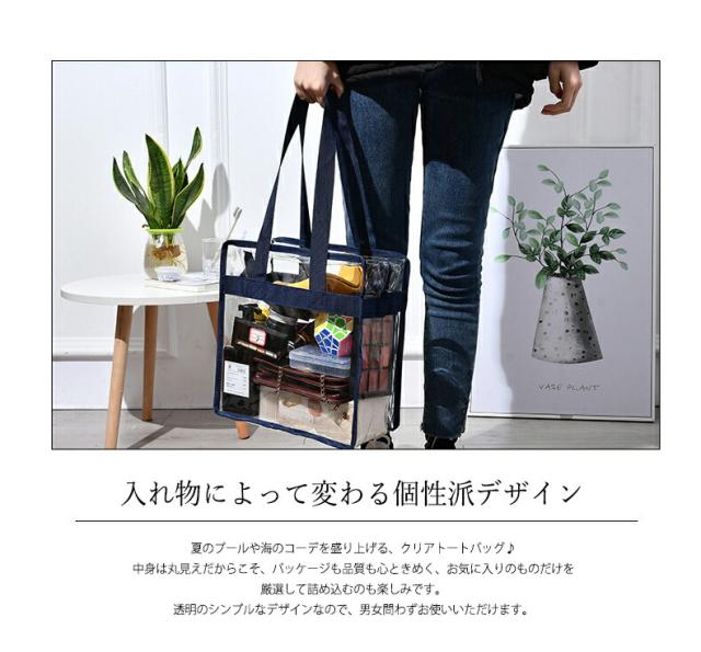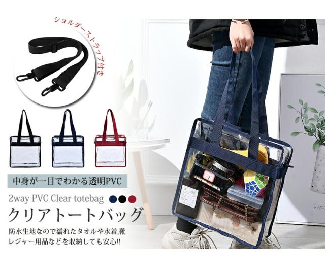 透明クリア トートバッグ 透明PVC クリア ショルダーバッグ 2WAY ショルダーストラップ付き 整理整頓 男女兼用 プールバッグ 銭湯バッグ 収納 鞄 小物収納 旅行用品 おしゃれ コスメポーチ