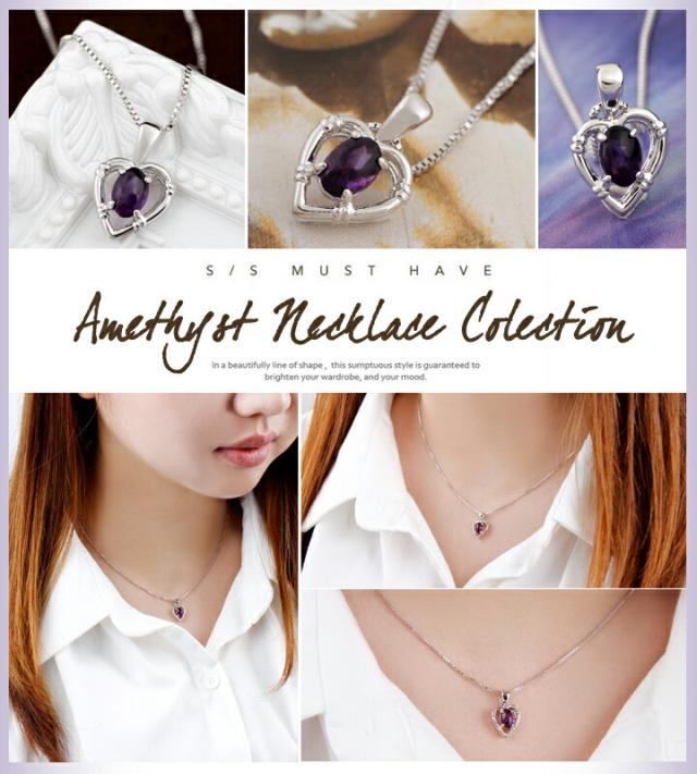 アメシスト ネックレス 2月の誕生石 天然 アメシスト 送料無料 レディースネックレス アメジスト ハート ペンダント ネックレス Sterling Silver Rhodium Plating 記念日 誕生日 入学式 卒業式 卒園式 お呼ばれ 成人式 お祝い