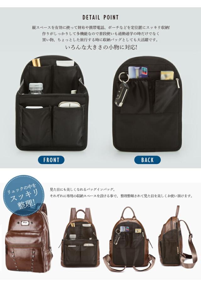 リュックインポケット バッグインバッグ リュック・デイバック 収納整理 男女兼用 レディースバッグ リュックサック バッグの中をすっきり バックインバック 男女兼用 大きめ インナーバッグ 収納 インナーポケット 小物整理 便利グッズ 旅行用品