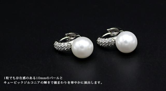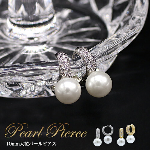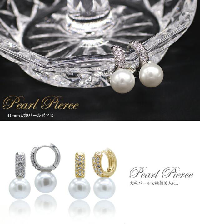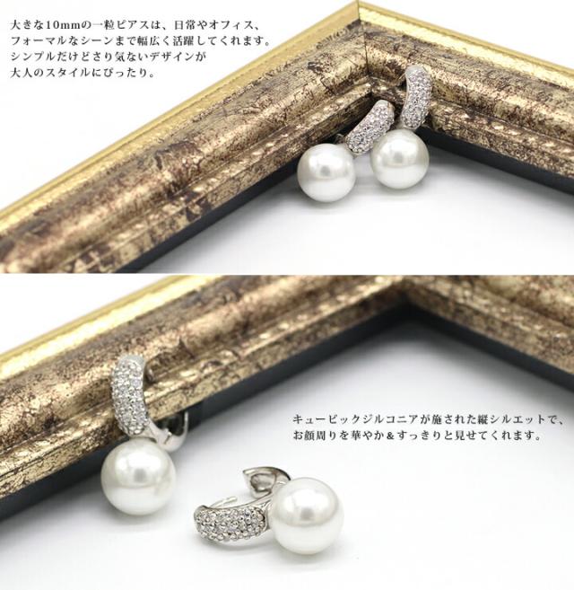 パール ピアス 10mm ホワイト 真珠 大粒 キュービックジルコニア カラー シルバー ゴールド デイリー ジュエル アクセサリー レディース シンプル 上品 二次会 女子会 入学式 入園式 卒業式 かわいい おしゃれ プレゼント