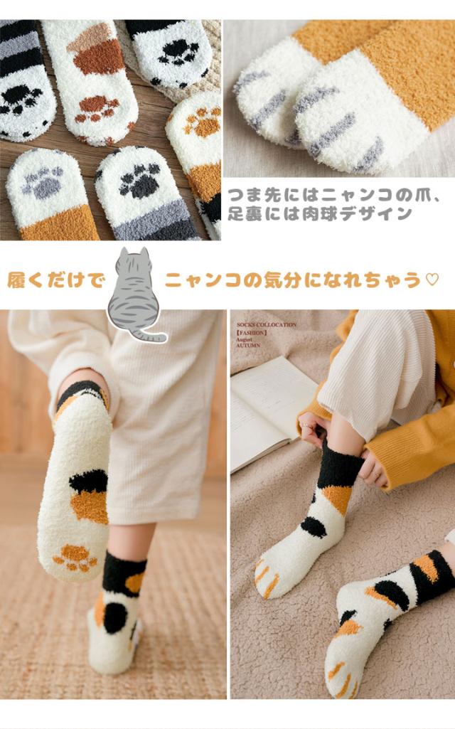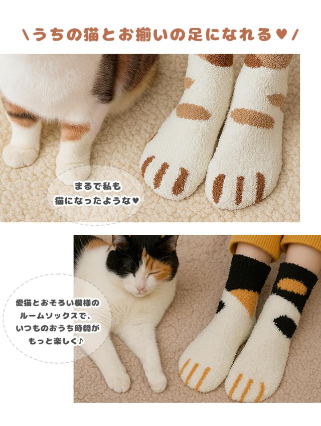 ルームソックス 2足セット もこもこ 猫 ネコソックス かわいい 猫肉球 あったか 冷え取り靴下 防寒あったか靴下 防寒靴下 くつ下 発熱 ソックス 暖かい靴下 ソックス もこもこソックス ふわふわ 冬 寒さ対策 足元あったか 日々の定番